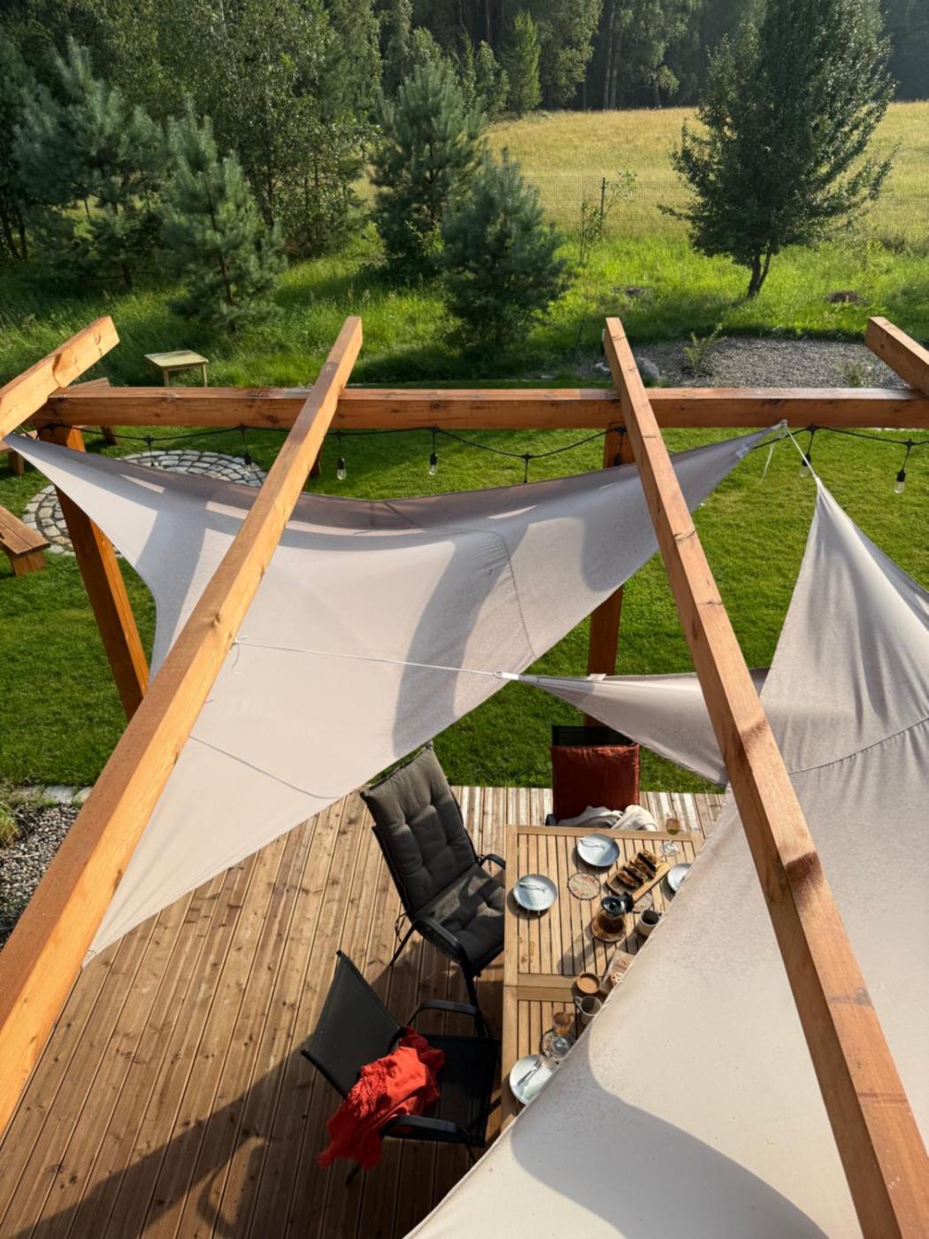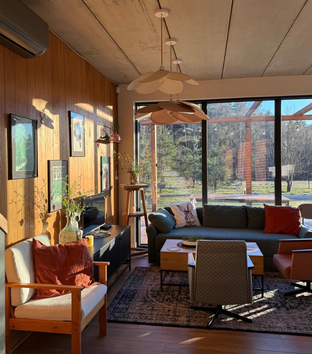 Domek z 3 sypialniami. This holiday homes special features are the sauna and the fireplace. Guests will find a stovetop, a refrigerator, a dishwasher and kitchenware in the well-equipped kitchen. The holiday home also includes a barbecue. The spacious holiday home features air conditioning, a washing machine, a terrace with garden views as well as a shared bathroom boasting a shower. The unit has 5 beds. Dom wakacyjny - 8 osobowy. Powierzchnia pokoju ok.: 120 mkw.