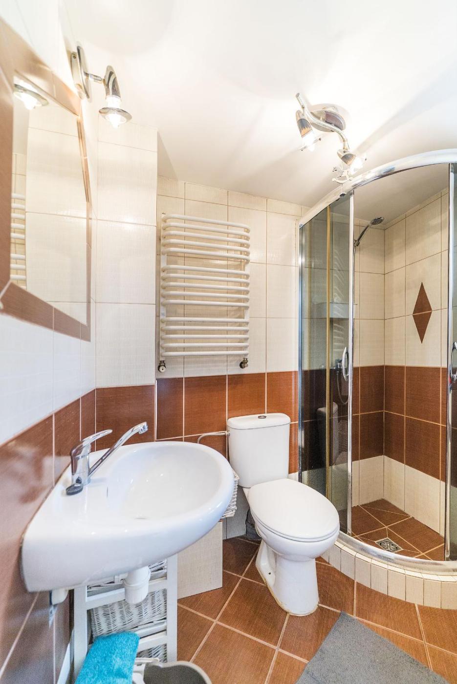 Domek. This chalet includes 1 bedroom, a kitchen and 1 bathroom with a walk-in shower and a hairdryer. In the fully equipped kitchen, guests will find a stovetop, a refrigerator, kitchenware and a microwave. The chalet offers a dining area, a wardrobe, an electric kettle, a flat-screen TV, as well as garden views. The unit has 2 beds. Domek - 3 osobowy. Powierzchnia pokoju ok.: 20 mkw. ;