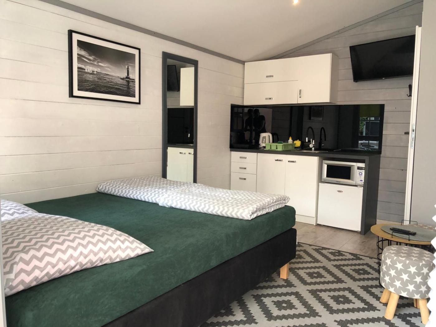 Domek z 1 sypialnią. Featuring a private entrance, this chalet also consists of 1 living room, 1 separate bedroom and 1 bathroom with a walk-in shower. In the well-equipped kitchenette, guests will find a stovetop, a refrigerator, kitchenware and a microwave. This chalet features a tea and coffee maker, a wardrobe, a flat-screen TV and a terrace. The unit offers 2 beds. Domek - 4 osobowy. Powierzchnia pokoju ok.: 18 mkw. ;