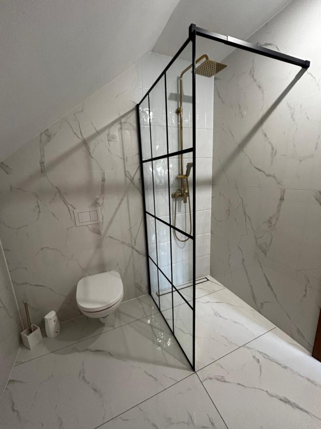 Pokój Czteroosobowy z łazienką. The quadruple room provides a wardrobe and a carpeted floor, as well as a private bathroom featuring a shower. The unit offers 2 beds. Pokój Czteroosobowy - 4 osobowy. Powierzchnia pokoju ok.: 12 mkw.